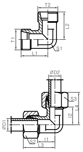 | T1 | T2 | D1/D2 | L1/L2 | L.3/L4 | l1/l2 | S1 | S2/S3 | g/pc | (bar) | ||