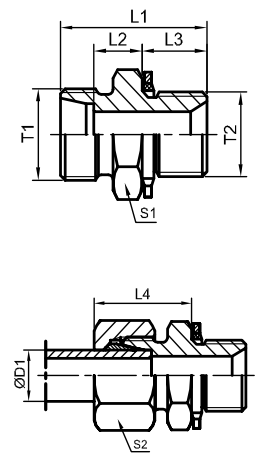 | T1 | T2 | D1 | L1 | L2 | L3 | L4 | 1 | S2 | g/pc | (bar) | |