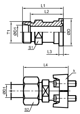 | T1 | D1 | D | L1 | L2 | L3 | L4 | 1 | S2 | g/pc | (bar) | ||