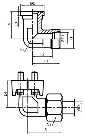 | T1 | D1 | D | L1 | L2 | L3 | L4 | L5 | 1 | S2 | g/pc | (bar) | |||