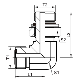 90°弯公制外螺纹O型圈平面密封/公制外螺纹可调向柱端重系列 ISO 6149-2