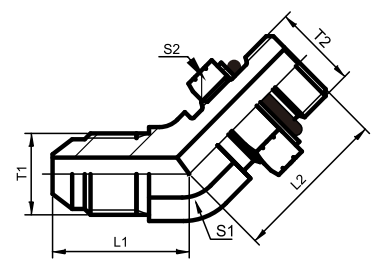 45°弯美制JIC外螺纹74°外锥/公制可调向柱端轻系列ISO6149-3