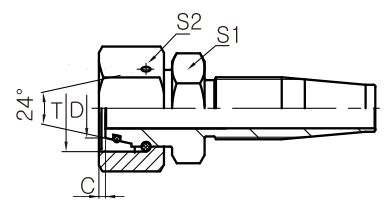 | THREAD T | Nominal Inner Diameter DN | Dash | TUBE O.D | C | S1 | S2 | |