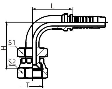 | THREAD T | Nominal Inner Diameter DN | Dash Number | L | H | S1 | 2 | |