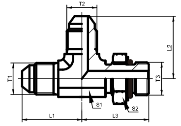 美制JC外螺纹74°外锥/SAE外螺纹带O型圈轻系列 IS011926-3主支三通