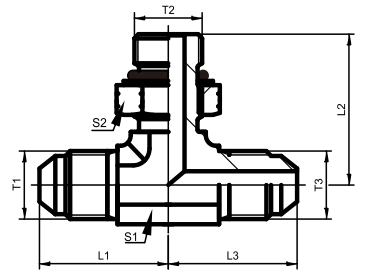 美制JC外螺纹74°外锥/SAE外螺纹带O型圈轻系列 ISO11926-3分支三通