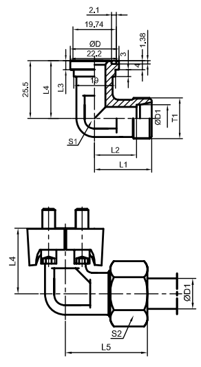 90°弯DIN卡套式 / SAE 法兰