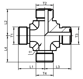 公制外螺纹O型圈平面密封 四通接头