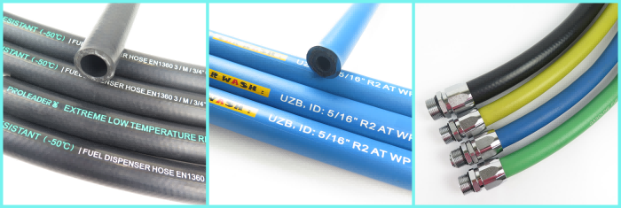耐低温油管:内外胶采用ECO氯醇橡胶(卓越的气密性和全面的耐油性); 增强层:一层/二层镀铜钢丝编织; 适用于超低温下,加油设备输送航空煤油、乙醇、汽油、柴油;使用的石油基液压油,燃油燃气等; 温度范围:-55℃~+100℃