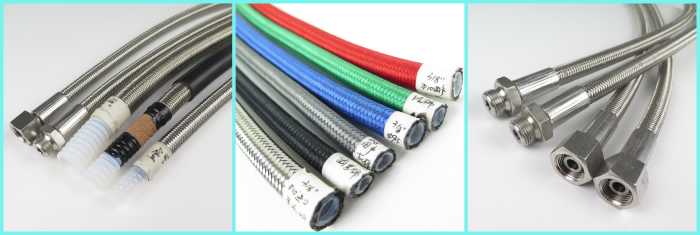产品可选择直管、波纹管(柔韧性高),外观可选择带不锈钢编织或带有尼龙编织线的软管